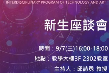 國立清華大學藝術學院學士班新生座談會9/7(三)16:00-18:00 教學大樓三樓2302教室
