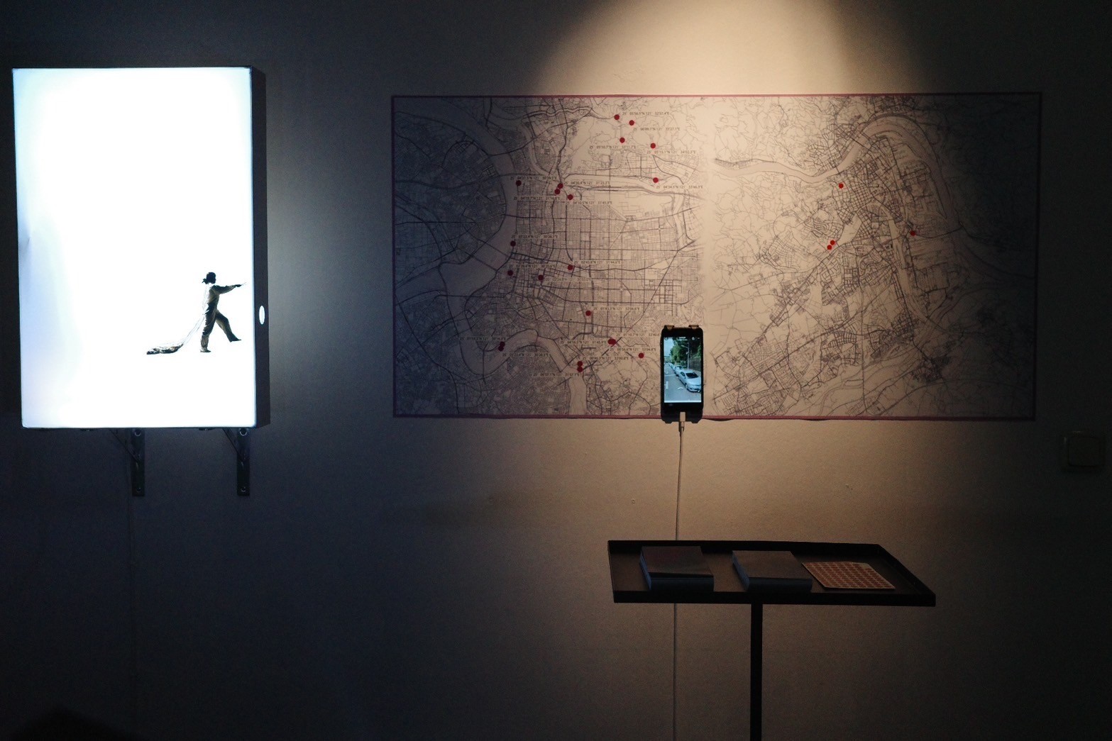 林雨靜的作品《At the Bend of the Street》旨在探討科技逐漸剝奪了人權,人們在科技的陰影下成為了赤裸的囚犯。私人避風港提供了希望和喘息的空間,地圖上每一個的標記都將是通往天堂的所在。作品的共創地圖吸引了大量觀眾的參與,其中包括從台灣到林茲參與展覽的觀眾以及其他林茲當地的居民。