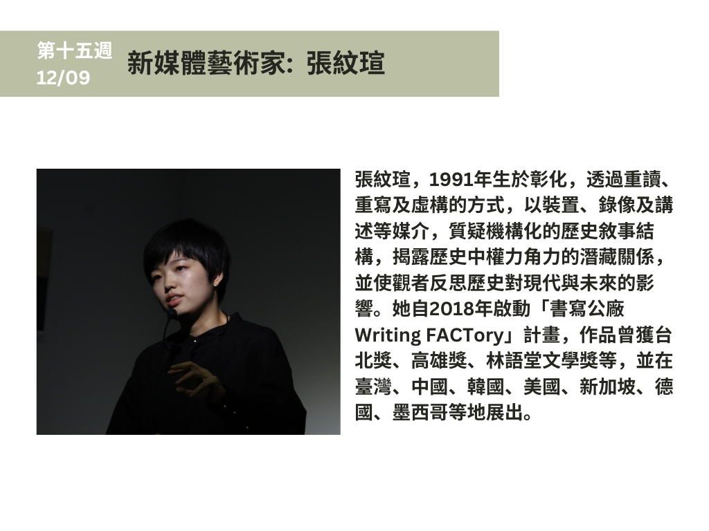 簡介:我們如何思考藝術家之於特定研究領域的功能?如果間諜動物讓觀眾得以從第一人稱視角觀察動物行為,藝術家或許可以被視為間諜研究者,在貌合卻神離的姿態下以另一種角度思考研究行為。在這場分享中,我將談談近年關注歷史敘事的創作,以及對藝術式研究的一些理解。