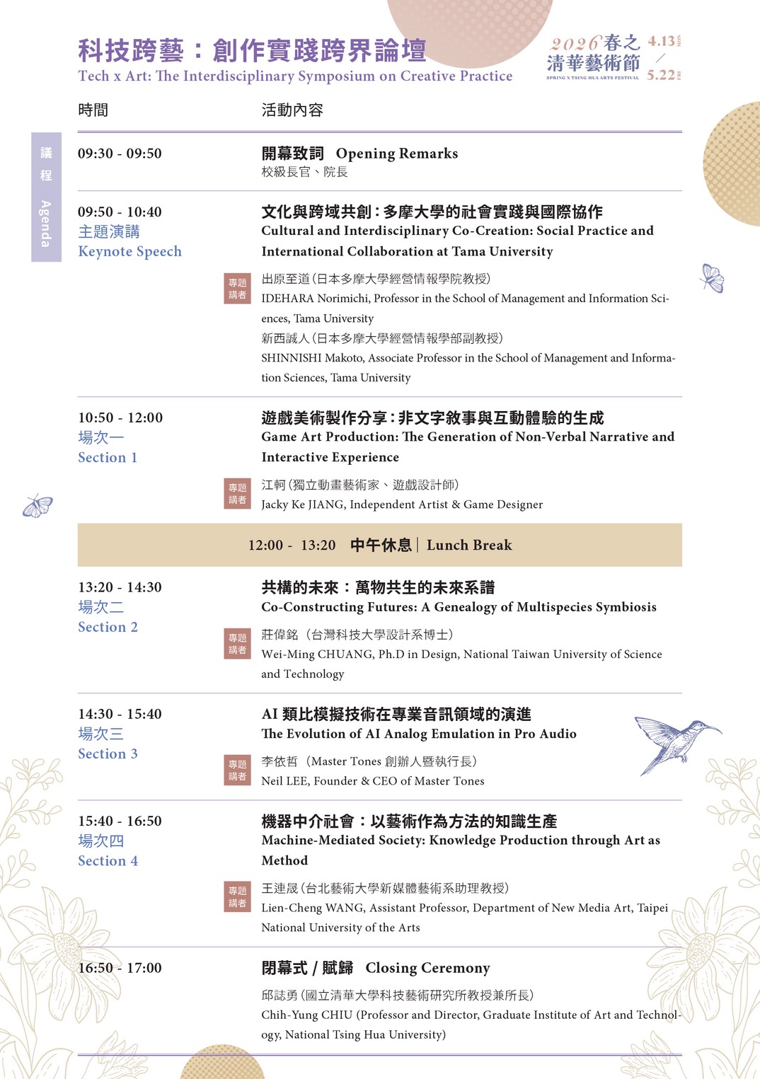 2026春之清華藝術節活動資訊:https://art.nthu.edu.tw/?p=6927#gsc.tab=0